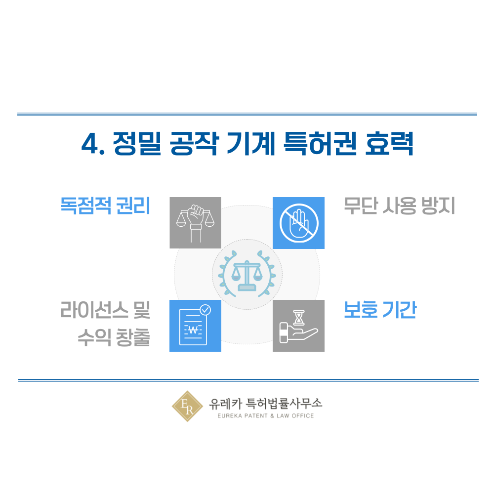 가공기계, 용접, 절삭, 연삭 장치 특허권이 등록되면 해당 기술은 독점적으로 사용할 수 있는 권리가 됩니다.