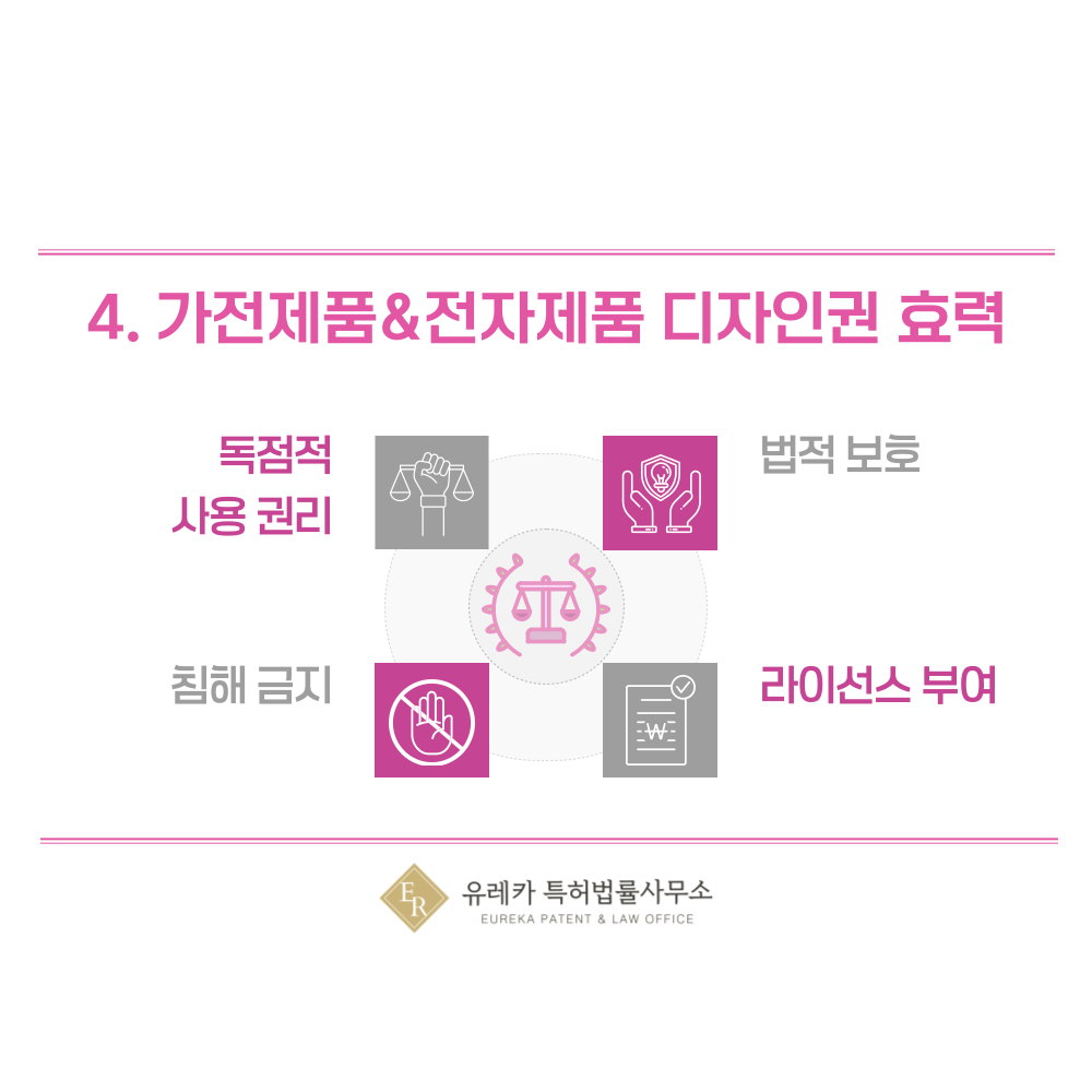 가전·전자 제품 디자인이 등록되면 권리자는 해당 디자인을 독점적으로 사용할 수 있는 권리를 갖게 됩니다.