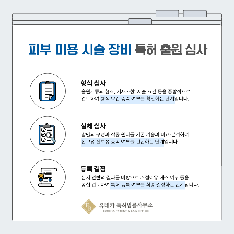 고주파, 초음파, RF 리프팅, 써마지, 울세라, 리쥬란, 스킨부스터 장비와 같은 특허 출원은 먼저 형식심사를 거치게 됩니다.
