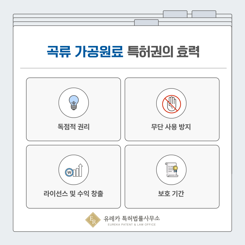 특허 등록이 되면 곡물, 곡분, 제분, 전분질 관련 기술에 대해