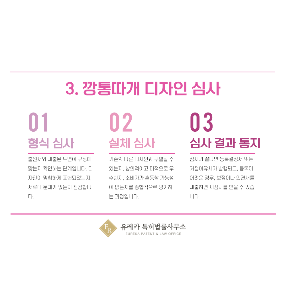 또한 등록된 디자인은 브랜드 신뢰도 향상과 시장 경쟁력 확보를 위한 핵심 자산으로 활용할 수 있습니다.