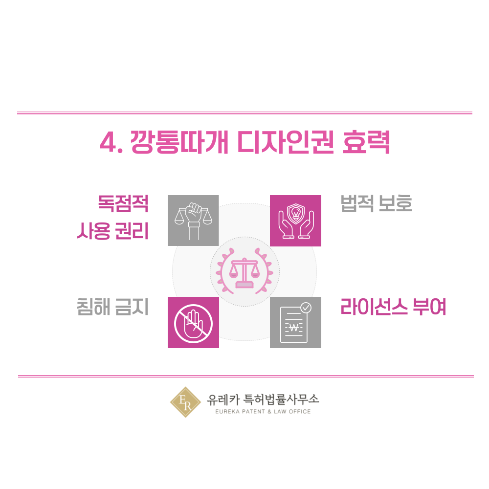 독점적 권리는 단순한 형태 보호를 넘어, 디자인을 하나의 자산으로서 경제적 가치로 전환할 수 있는 법적 기반이 됩니다.