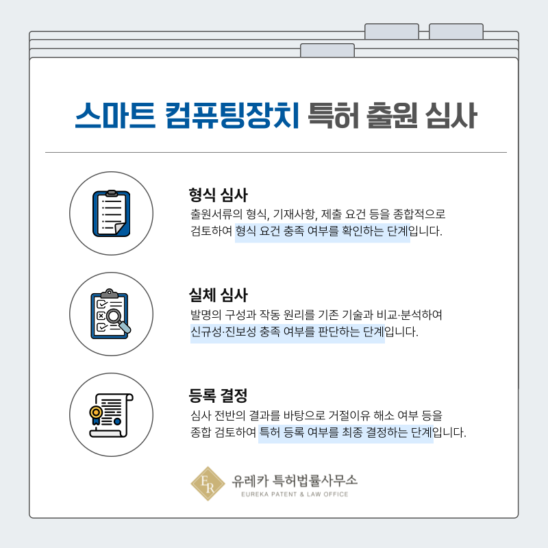 심사 단계에서는 해당 기술이 신규성, 진보성, 산업적 이용 가능성을 충족하는지 판단합니다.