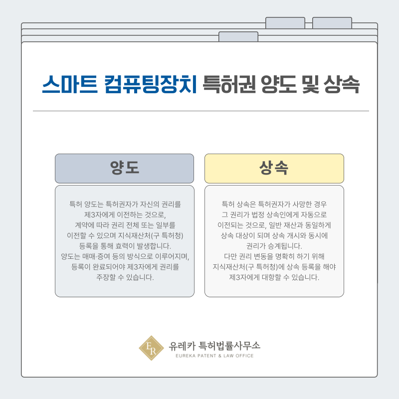상속인은 권리를 승계한 후 지식재산처(구 특허청)에 상속 등록을 해야 권리를 공식적으로 행사할 수 있습니다.