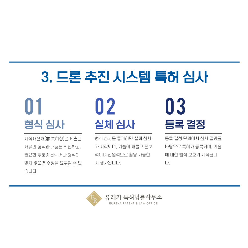 즉, 이 단계는 드론 기술이 법적으로 보호받을 수 있을지를 최종 판단하는 절차로, 기술적 완성도와 서류의 명확성이 매우 중요합니다.