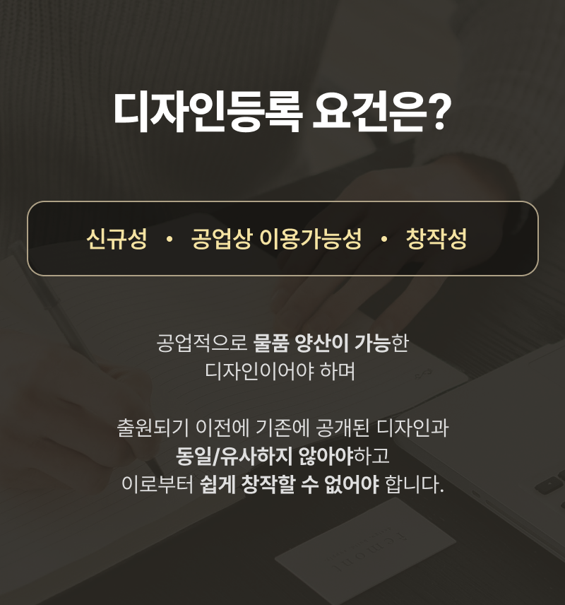 디자인등록요건에 부합하는 디자인만이 등록 가능합니다.