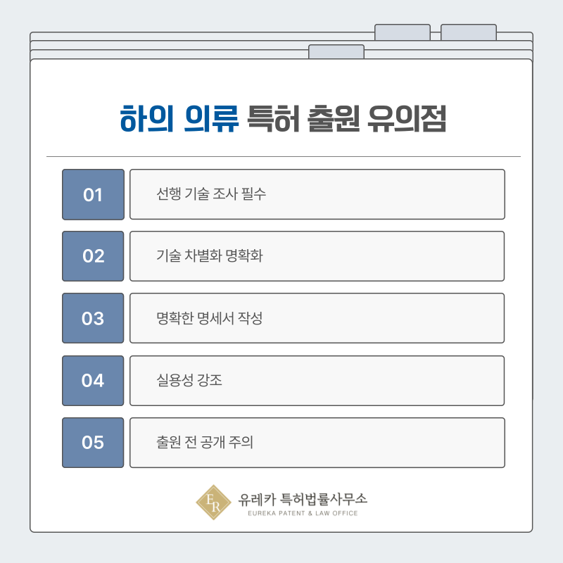 특히 의류 분야는 디자인과 기능이 혼합된 경우가 많아, 기술적 차별성을 논리적으로 설명하는 것이 중요합니다.