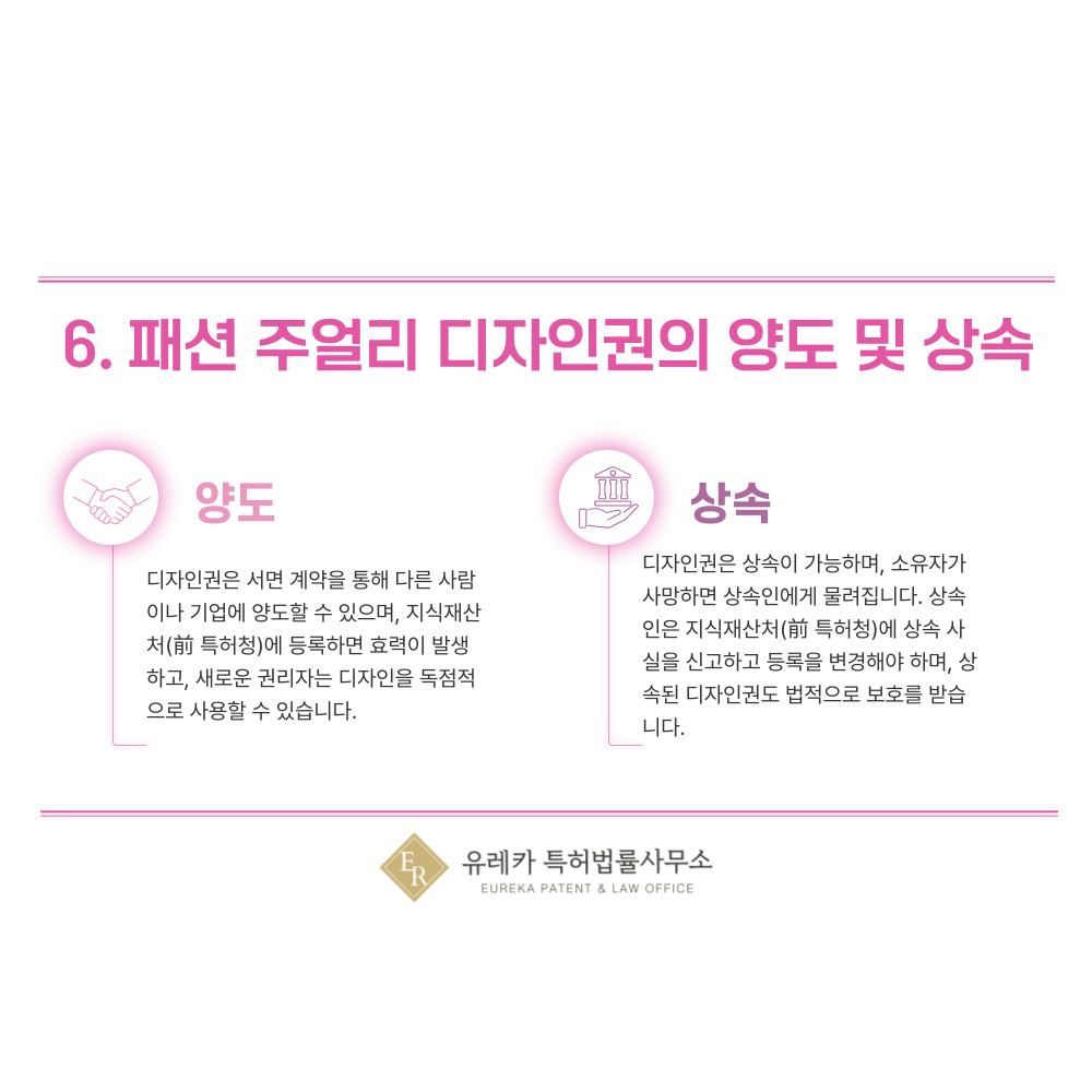 6. 패션 주얼리, 반지, 목걸이, 팔찌, 귀걸이, 펜던트, 체인, 커프 디자인권의 양도 및 상속