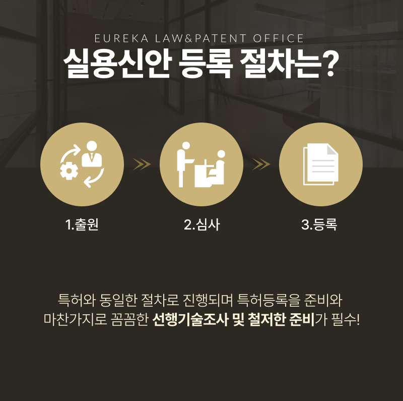 이와 같이, 특허와 동일한 절차로 진행되며 특허등록을 준비와 마찬가지로 꼼꼼한 선행기술조사 및 철저한 준비가 필수입니다.