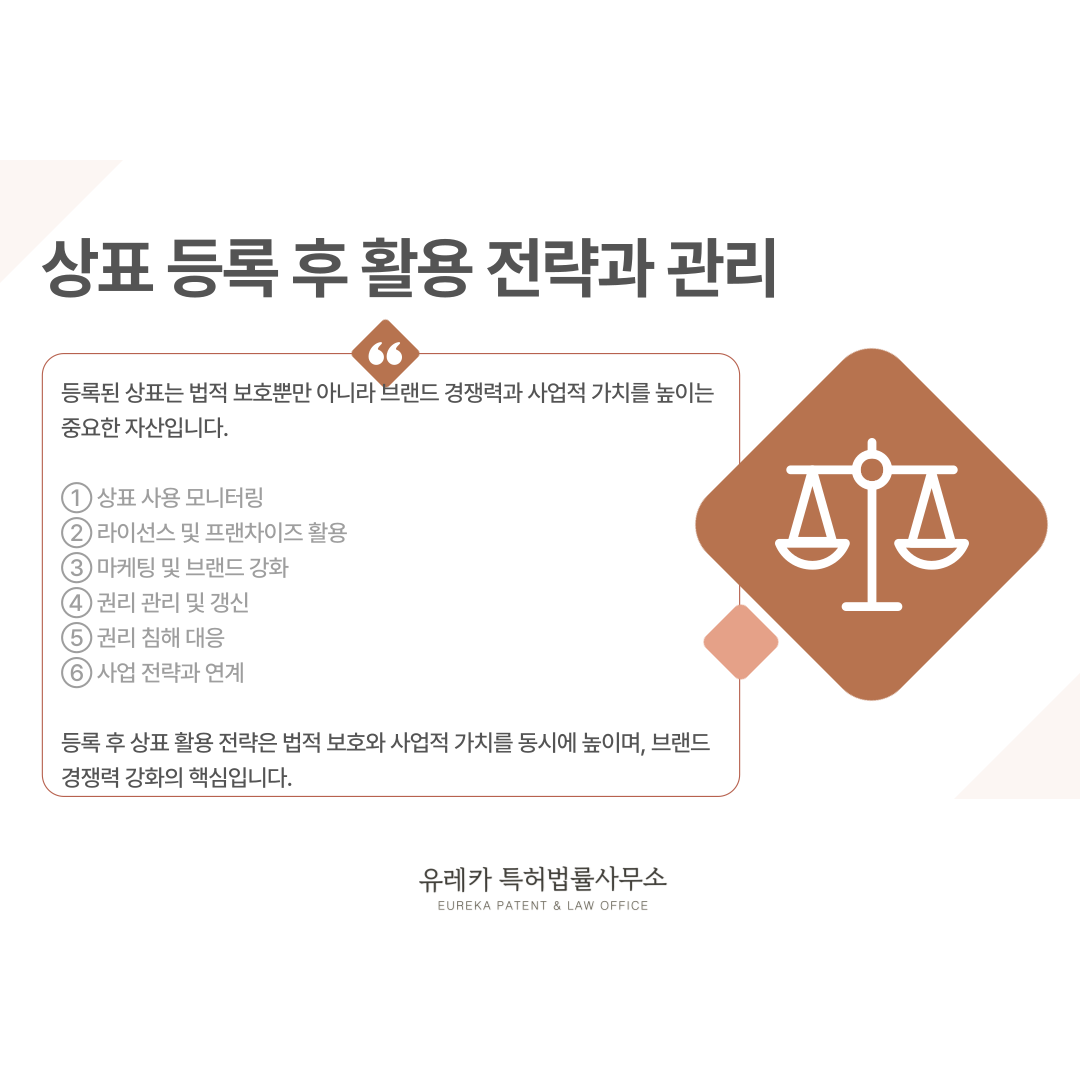 등록 후에도 상표 활용과 권리 보호가 필요합니다.