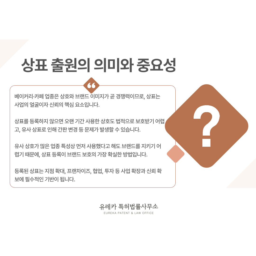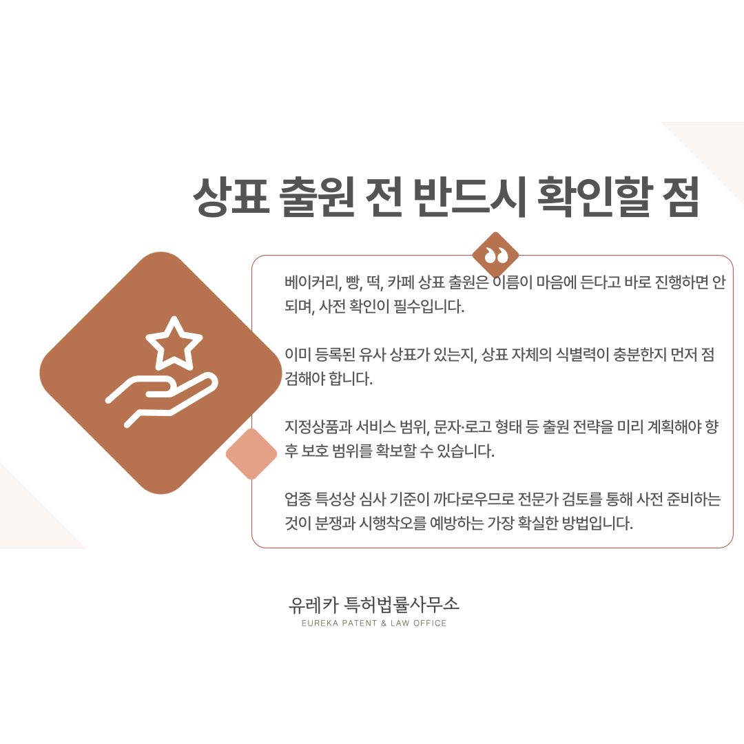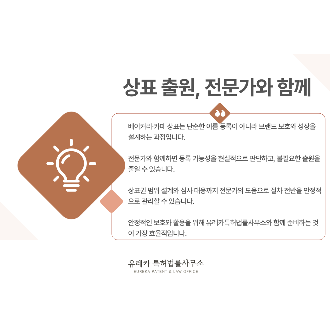 베이커리·카페 상표는 브랜드 이미지와 직결되기 때문에 작은 실수 하나도 큰 손실로 이어질 수 있습니다.