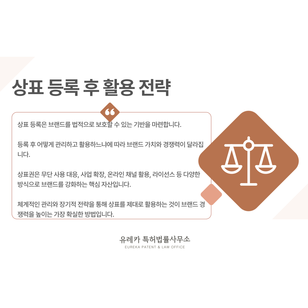 상표 등록 후 전략적인 관리가 이루어져야 브랜드 경쟁력이 제대로 작동합니다.