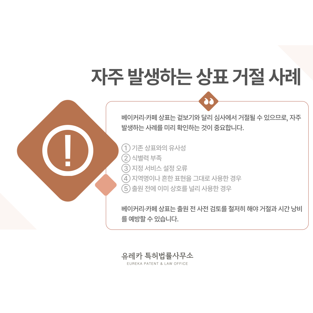 베이커리·카페 업종의 상표 거절 사례는 대부분 사전 검토 부족에서 시작됩니다.