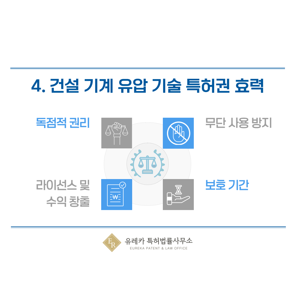 4. 건설 기계 유압 기술, 붐·암·버킷 유압 회수 및 다기능 어태치먼트, 작동유체공학, 유압회로, 액추에이터 특허권 효력