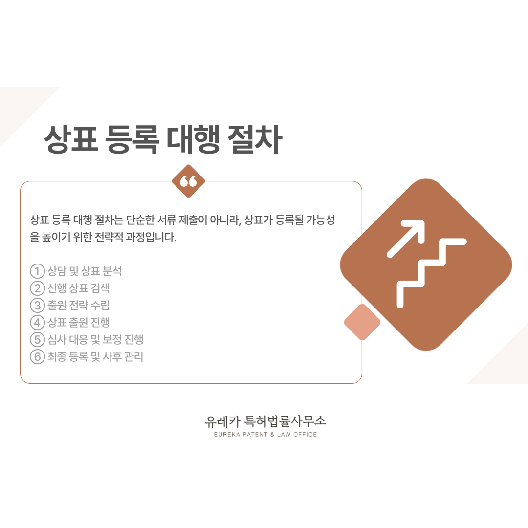 상표 등록 대행 절차는 단순한 서류 제출이 아니라, 상표가 등록될 가능성을 높이기 위한 전략적 과정입니다.