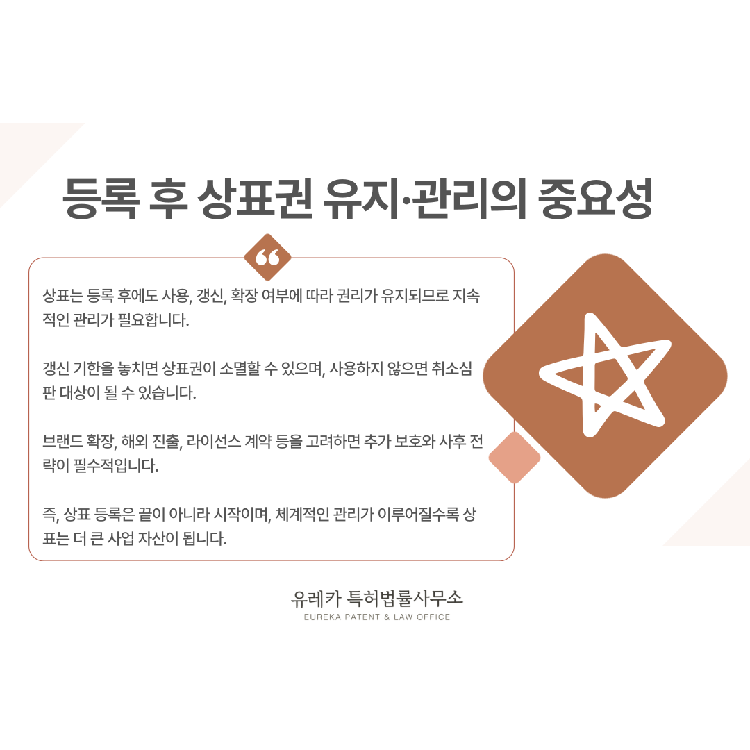 상표는 등록이 끝이 아니라, 등록 이후 유지·관리가 더 중요한 단계입니다.