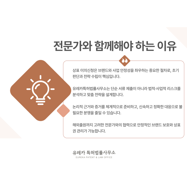 유레카특허법률사무소와 함께 안정적인 브랜드 보호 전략을 준비해 보시기 바랍니다.