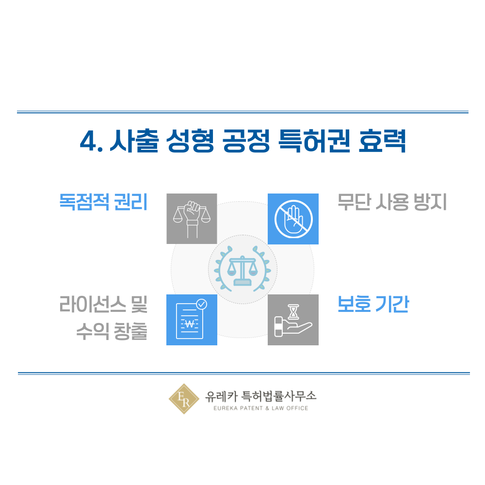 이로써 발명자는 자신이 개발한 성형·사출 기술을 독점적으로 보호받을 수 있습니다.