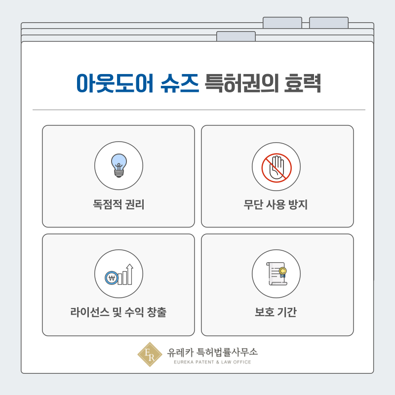 예를 들어 특정 밑창 구조나 스트랩 고정 방식이 특허로 등록되었다면 해당 기술은 권리자만이 생산과 판매에 활용할 수 있습니다.