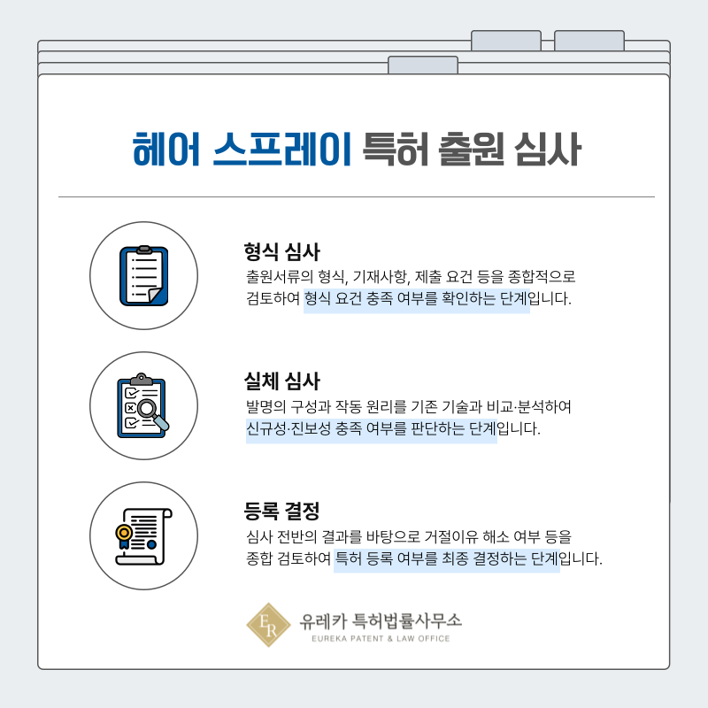 스프레이, 헤어 스타일링, 픽서 관련 특허라도 기술 내용 이전에 서류의 완성도가 먼저 검토됩니다.