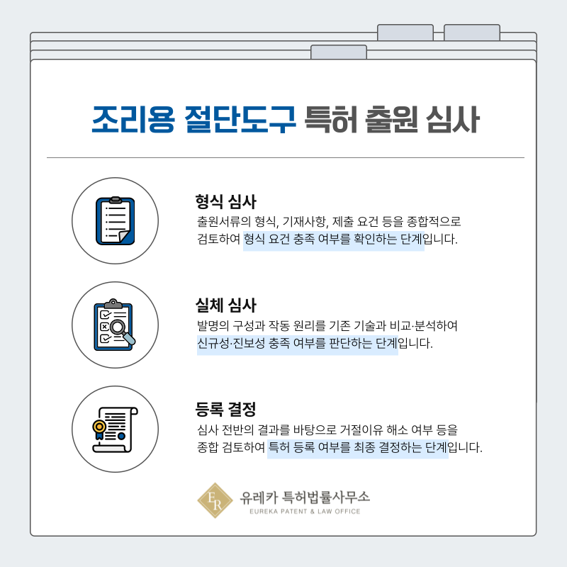 칼이나 절단기와 같은 분야는 기존 기술이 많기 때문에 차별성이 명확하지 않으면 거절될 수 있습니다.