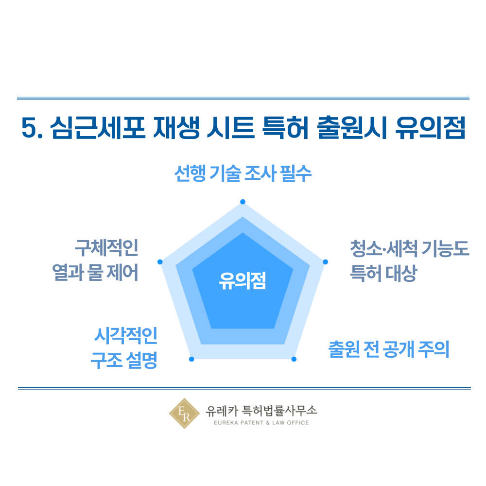 특허 등록을 위해서는 기존 기술과 뚜렷하게 구별되는 차별성이 필요합니다. 예를 들어, 단순한 심근세포 배양이 아닌 전기자극을 활용해 세포의 기능을 강화하거나, 새로운 방식의 심근세포시트를 구현한 경우처럼 독창적인 특징을 명확히 제시해야 합니다. 차별화 포인트를 분명히 해야 진보성이 인정될 가능성이 커집니다.