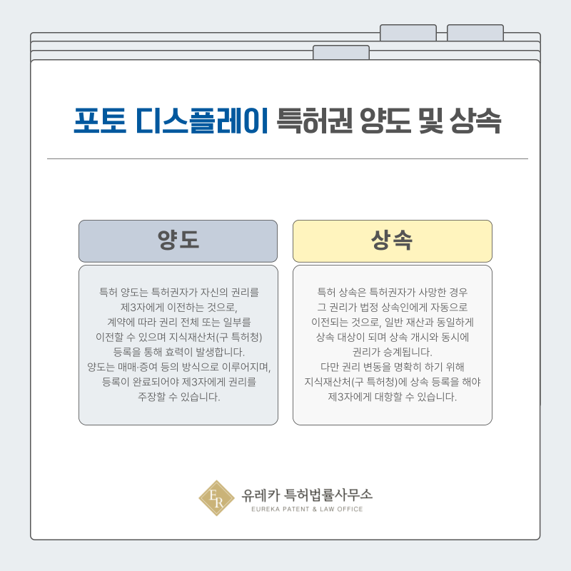 따라서 액자나 포토 디스플레이 관련 특허도 상속인을 통해 자동으로 권리가 이전될 수 있습니다.