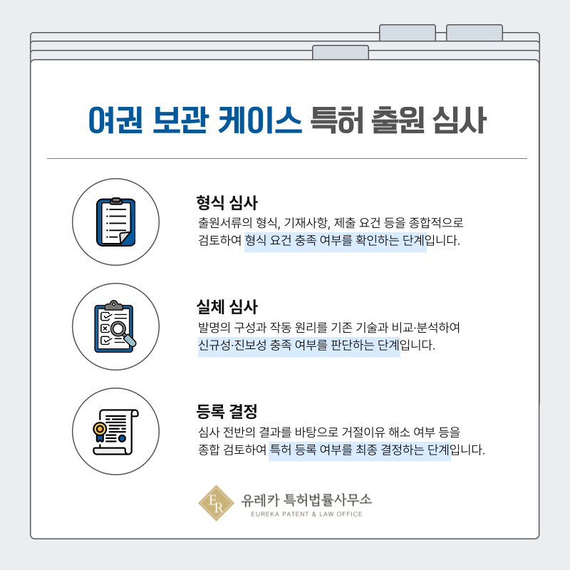 여권케이스 분야에서는 신규성, 진보성, 산업적 이용가능성 기준을 중심으로 기존 기술과 비교 분석이 이루어집니다.