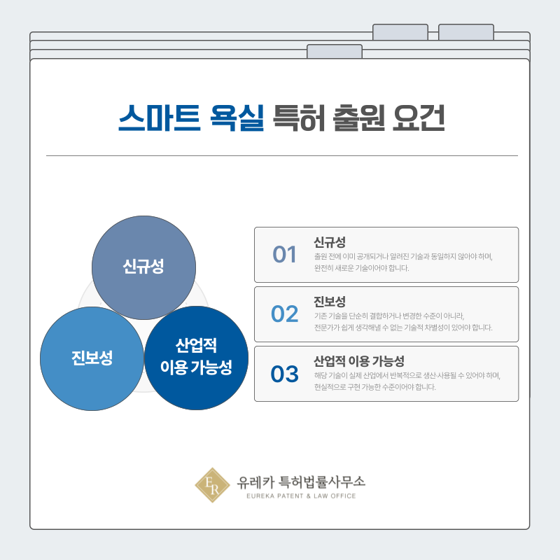 욕실 설비나 스마트 욕실 기술의 경우 구조적 차별성, 위생 기능 개선, 자동화 요소 등이 중요한 평가 기준이 됩니다.