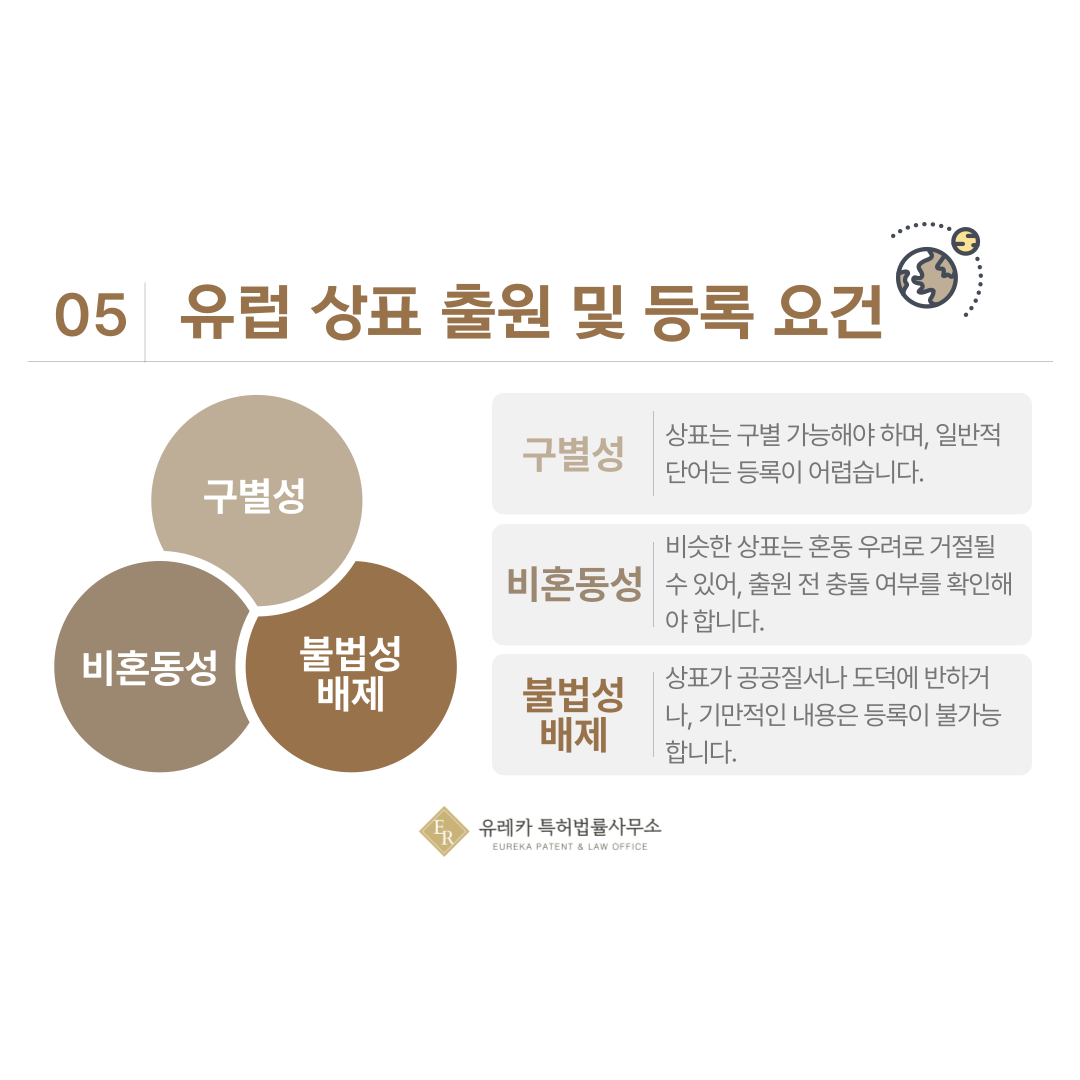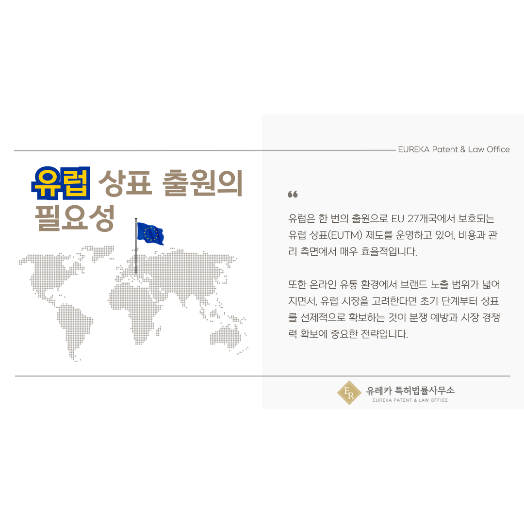 특히 온라인 플랫폼, 글로벌 전자상거래 환경에서는 브랜드가 자연스럽게 국경을 넘어 노출되기 때문에, 유럽 시장을 고려한 상표 보호는 점점 더 중요해지고 있습니다.