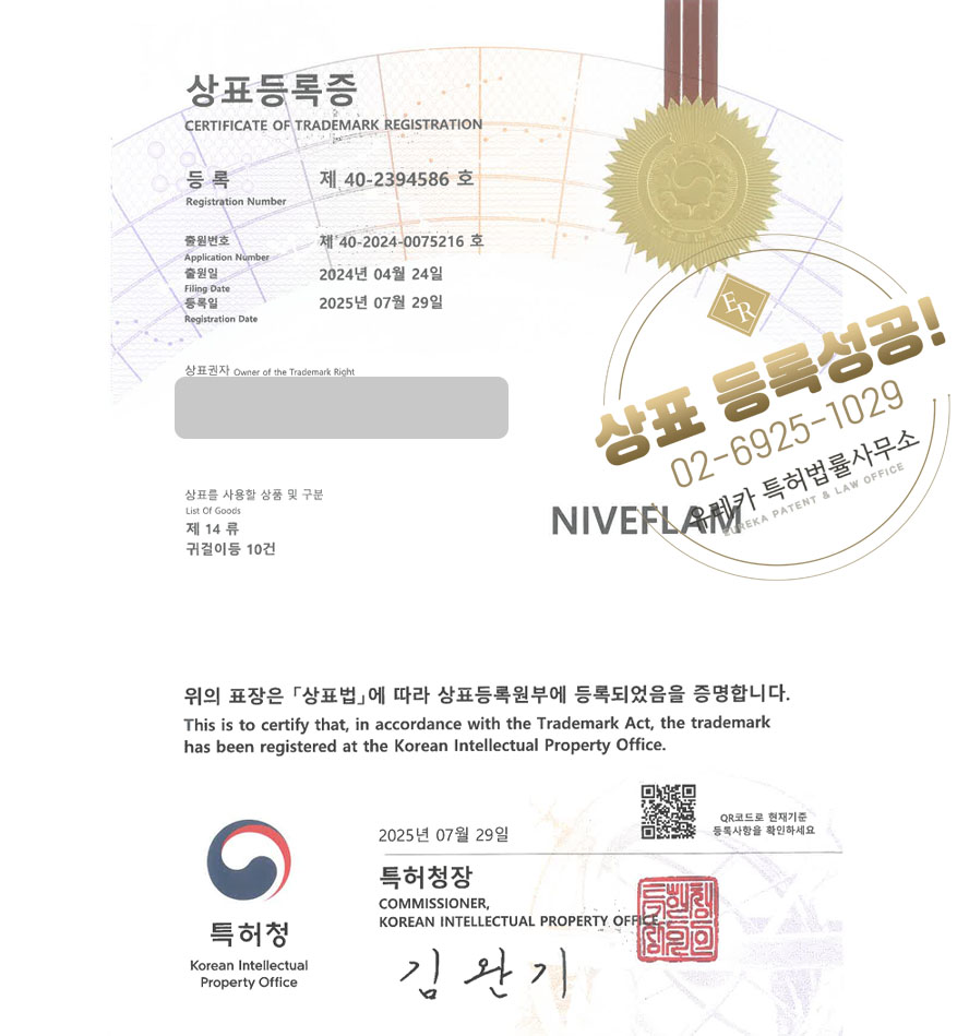 유레카 상표등록성공! 주얼리, 핸드메이드 패션소품 상표 특허 출원 “NIVEFLAM” 상표권 디자인 등록