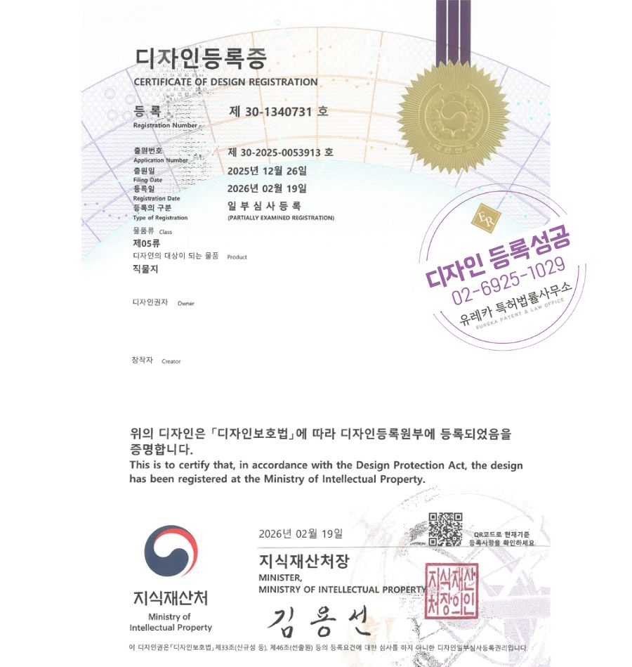 유레카 디자인등록성공ㅣ레이스, 텍스타일, 의류안감 디자인 출원 “직물지” 디자인권 특허 등록