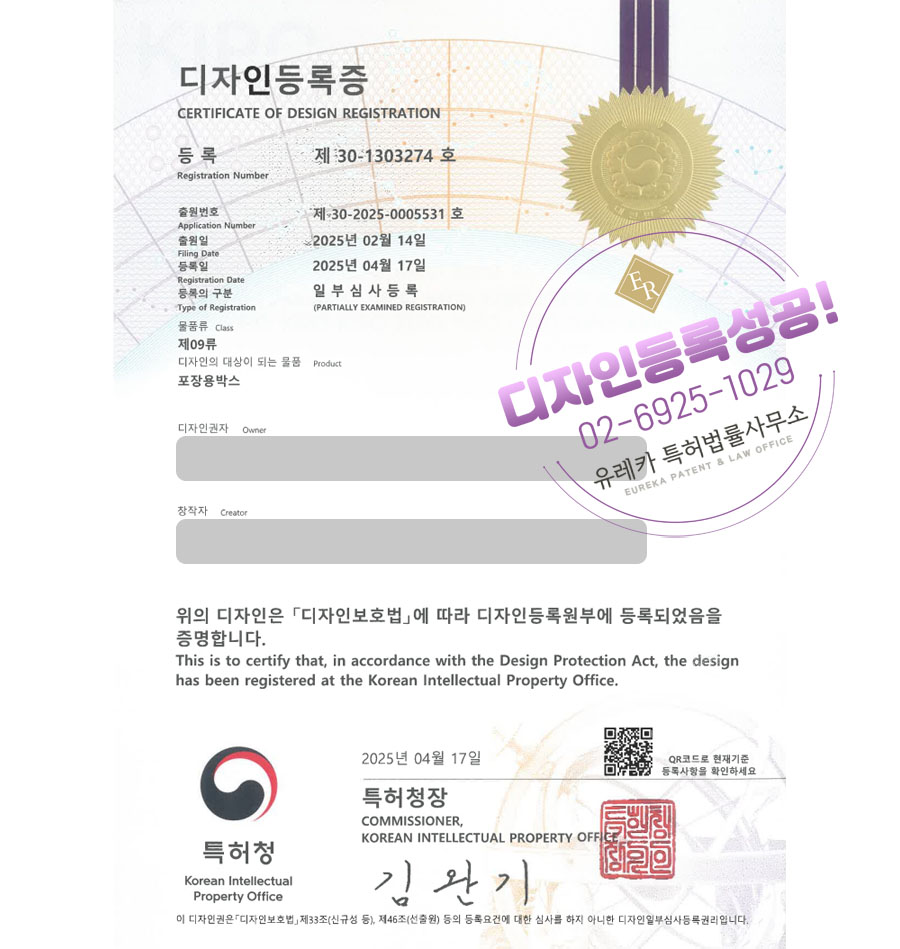 유레카 디자인등록성공ㅣ식품포장상자, 김치박스, 택배박스 디자인 출원 “포장용박스” 디자인권 특허 등록