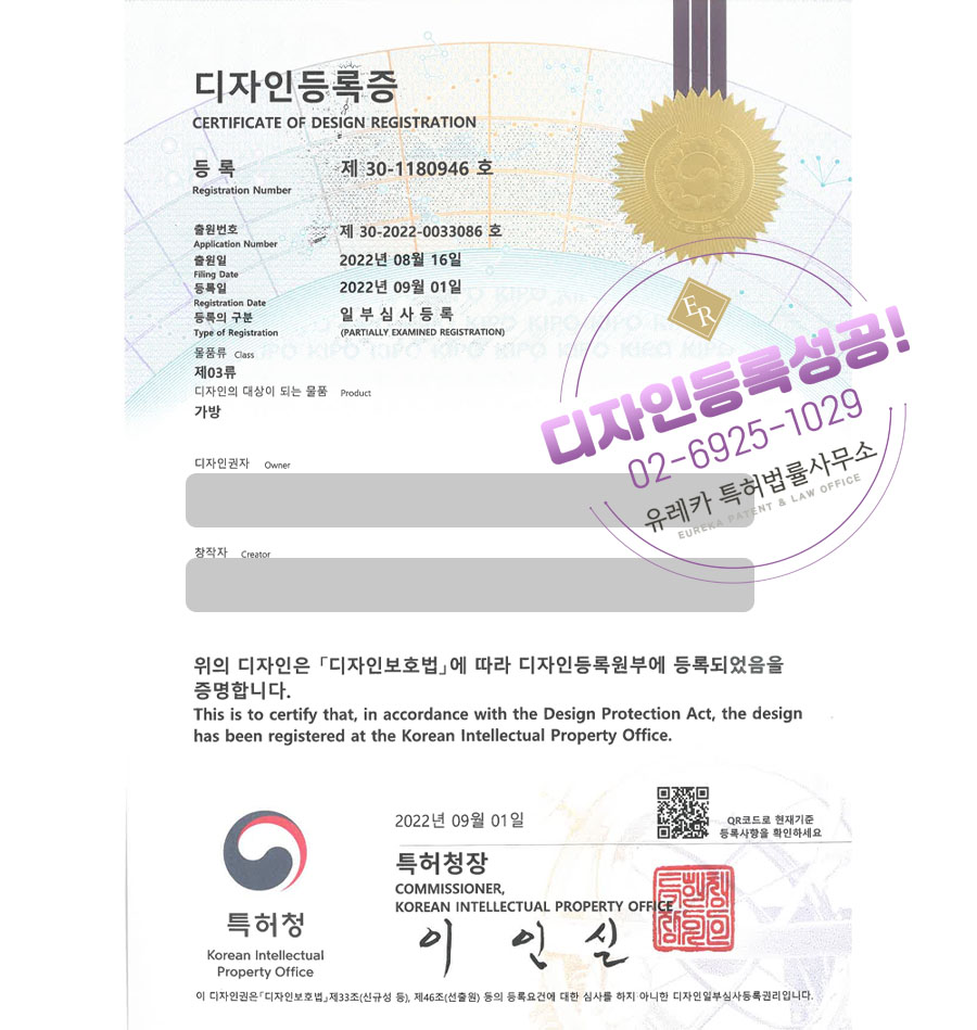 유레카 디자인등록성공ㅣ웨이스트백, 힙색, 슬링백 디자인 출원 “가방” 디자인권 특허 등록