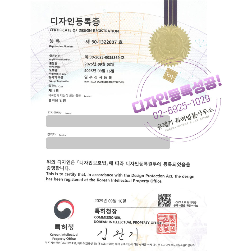 디자인등록이 완료되었습니다.