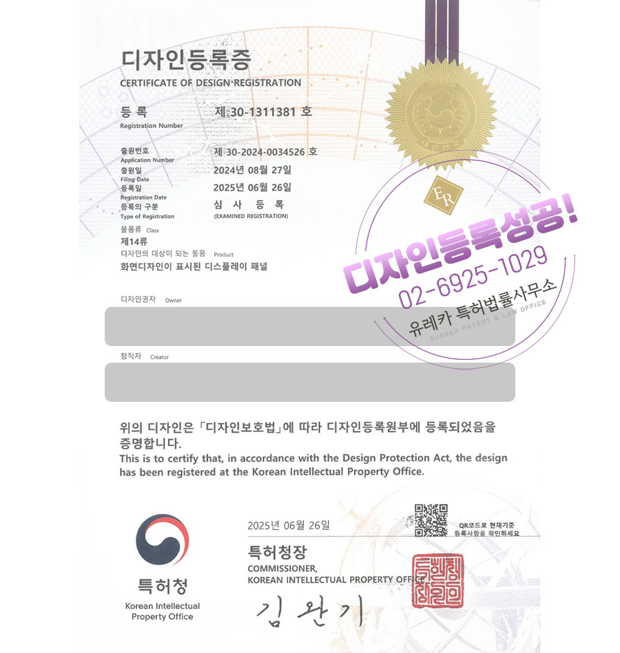 유레카 디자인등록성공ㅣ캐릭터, 이모티콘, 천안 디자인 출원 “화면디자인이 표시된 디스플레이 패널” 디자인권 특허 등록