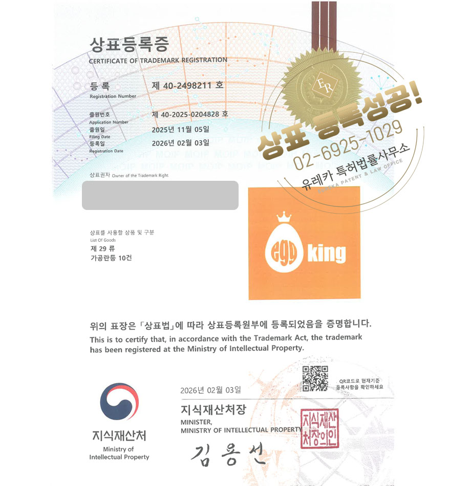 유레카 빠른심사 상표등록성공! 계란 브랜드, 달걀, 반숙란 브랜드 상표 특허 출원 “egg king” 상표권 디자인 등록