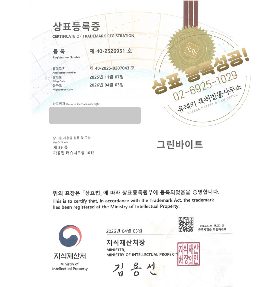 본 상표를 약 "4개월" 만에 등록하는 데 성공했습니다.