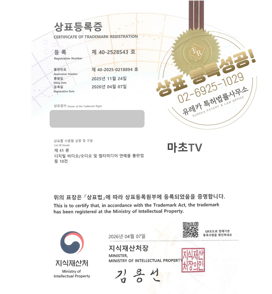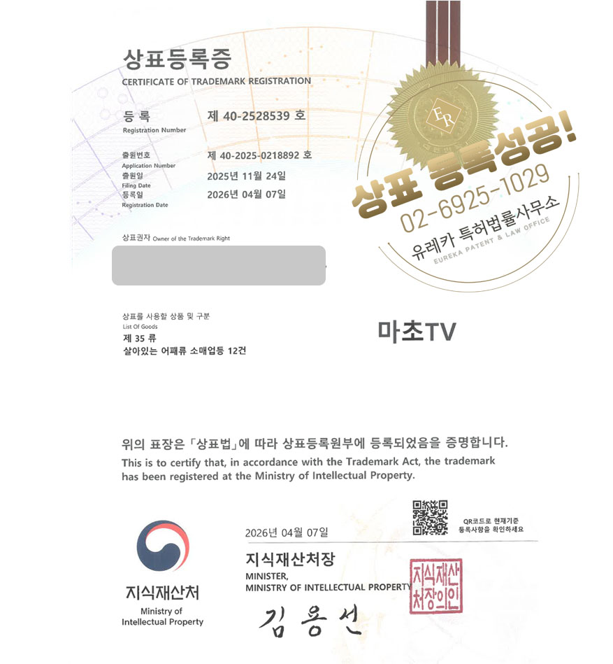 상표심사를 통과하여, 최종적으로 35, 41류 상표등록에 성공하였습니다!