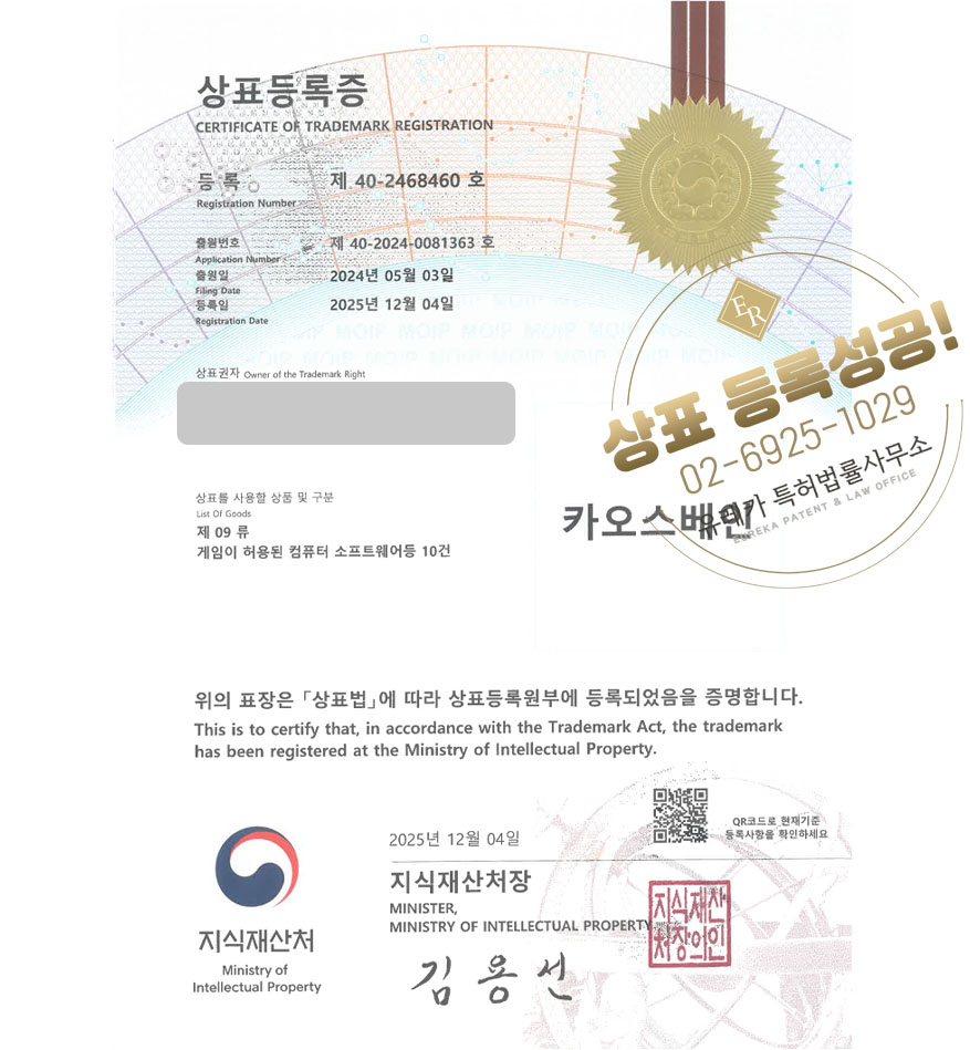 유레카 상표등록성공! 게임제작사, 게임브랜드, 모바일 게임 상표 특허 출원 “카오스베인” 상표권 디자인 등록