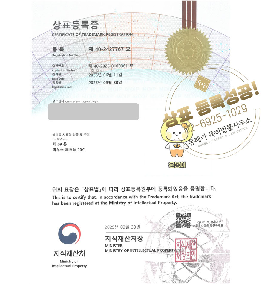 유레카 상표등록성공! 구청 마스코트, 도시 캐릭터, 지역캐릭터 상표 특허 출원 “은봉이” 상표권 디자인 등록