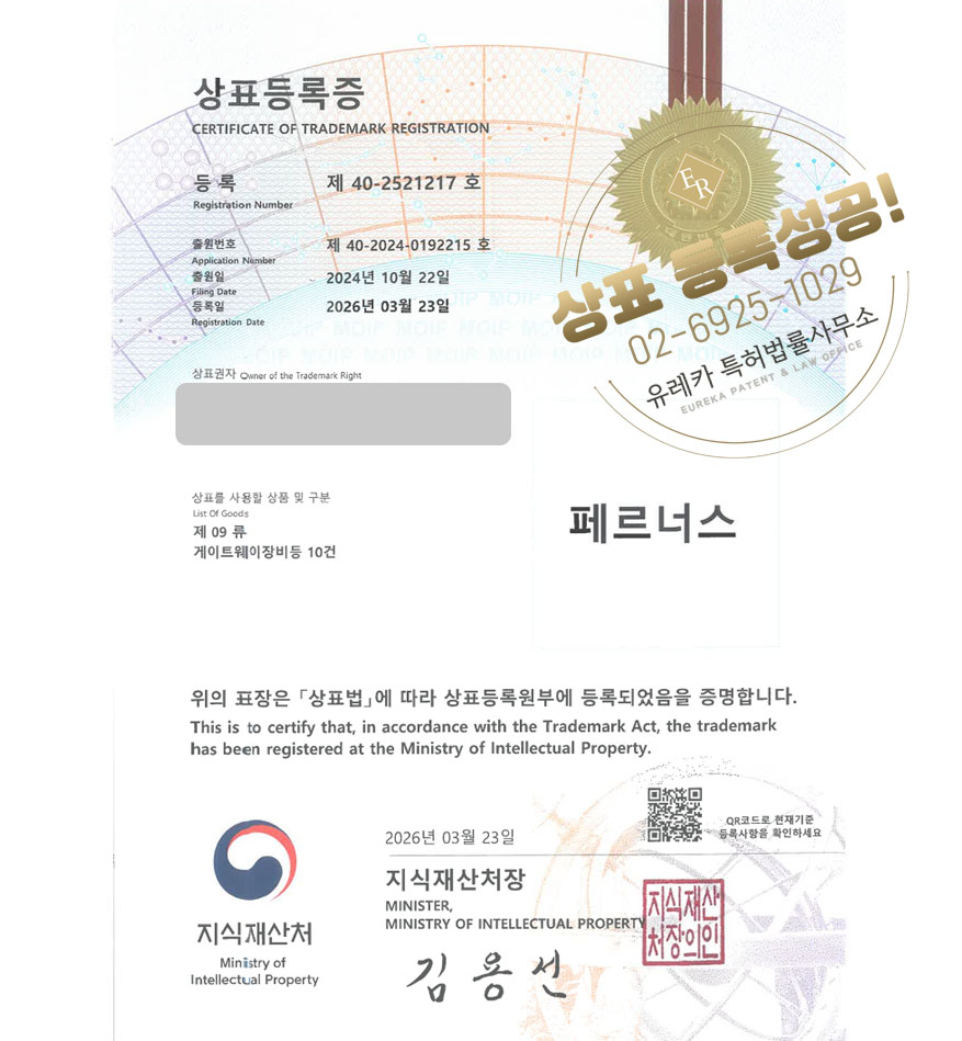 유레카 상표등록성공! 딥테크기업, IoT, AI기업, IT기업, 화재감지기 상표 특허 출원 “페르너스” 상표권 디자인 등록