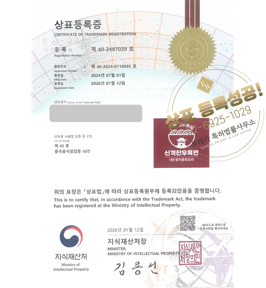유레카 상표등록성공! 면요리전문점, 대만음식점, 우육면식당체인 상표 특허 출원 “신객잔우육면” 상표권 디자인 등록