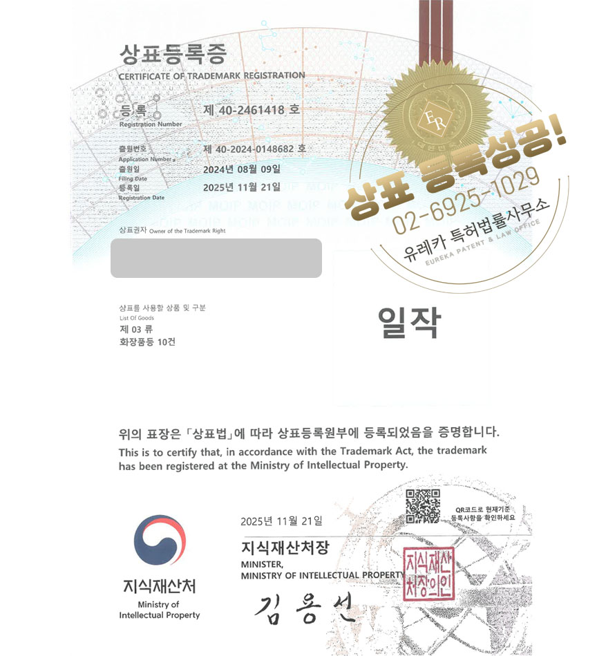 유레카 상표등록성공! 바디로션브랜드, 임산부화장품, 안티에이징크림 상표 특허 출원 “일작” 상표권 디자인 등록