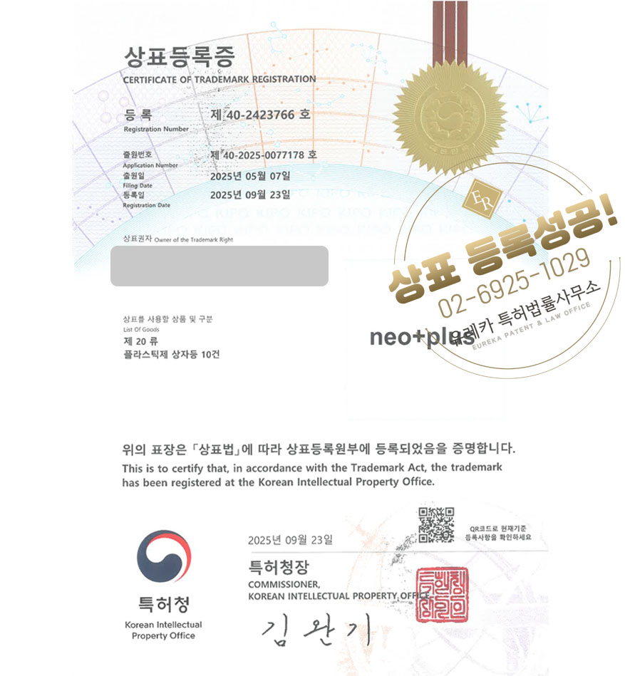 유레카 상표등록성공! 아이스 박스, 텀블러, 박스 제조업체 상표 특허 출원 “neo+plus” 상표권 디자인 등록