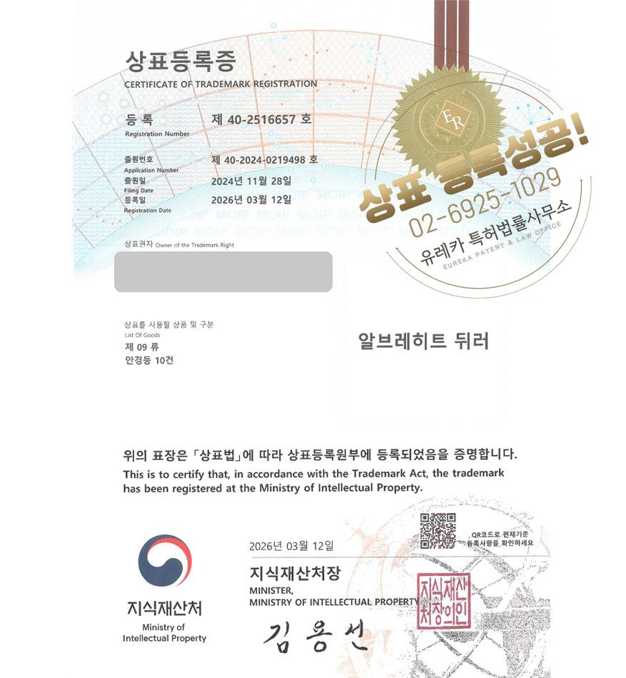 유레카 상표등록성공! 안과, 안경체인, 선글라스 상표 특허 출원 “알브레히트 뒤러” 상표권 디자인 등록