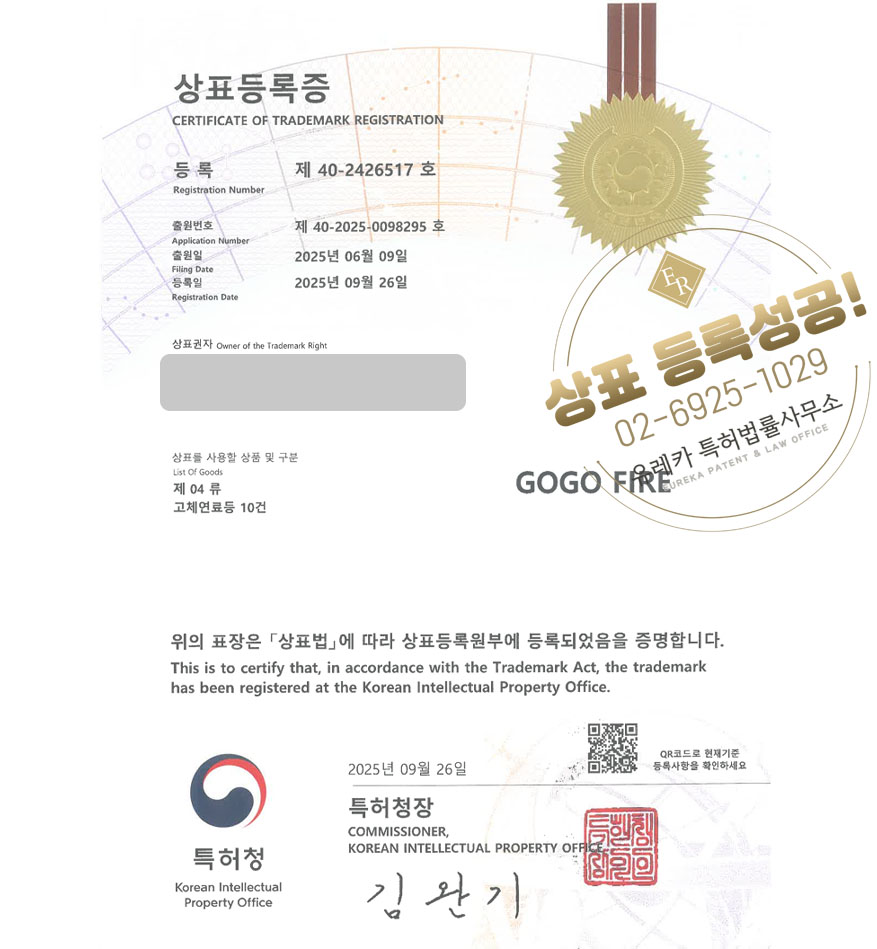 유레카 상표등록성공! 연료 브랜드, 그릴 브랜드, 캠핑 쇼핑몰 상표 특허 출원 “GOGO FIRE” 상표권 디자인 등록