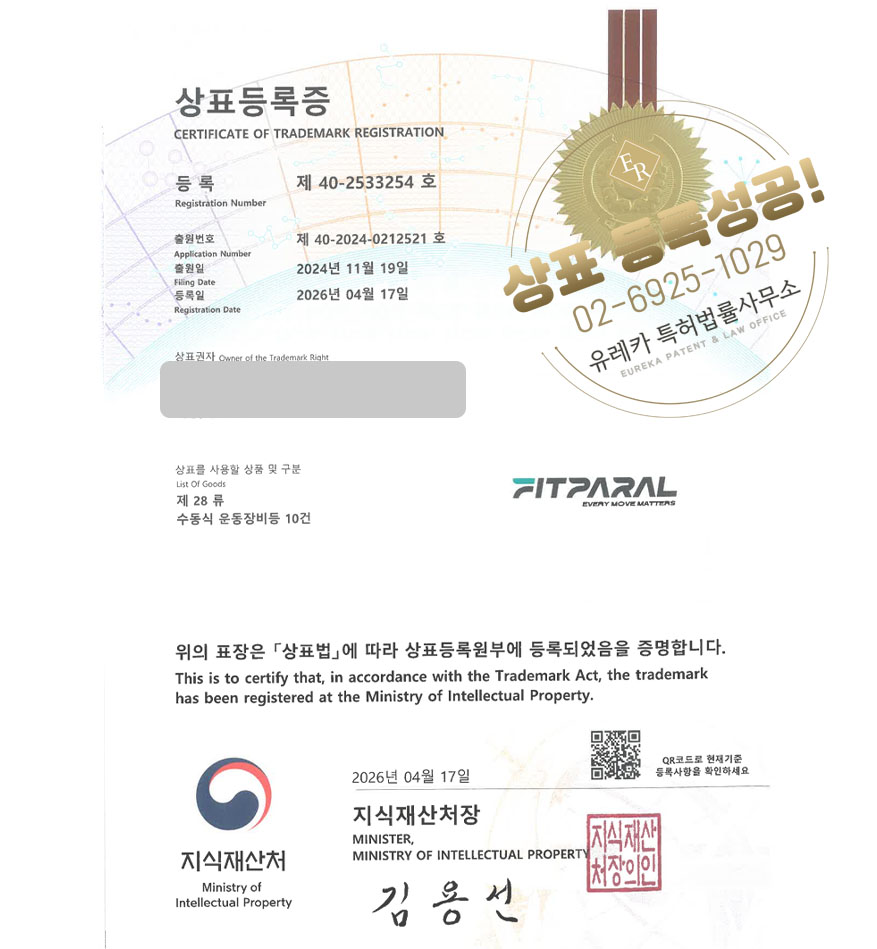 상표심사를 통과하여, 최종적으로 28, 35류 상표등록에 성공하였습니다!