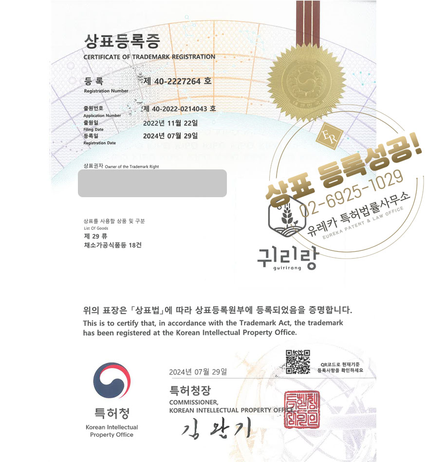 유레카 상표등록성공! 정읍 상표, 잡곡브랜드, 농업회사 상표 특허 출원 “귀리랑” 상표권 디자인 등록