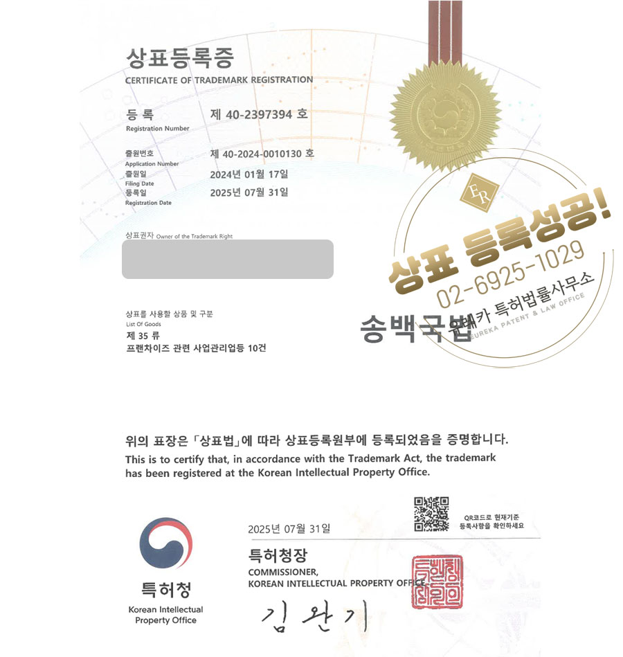 35류로 최종 등록에 성공했습니다!